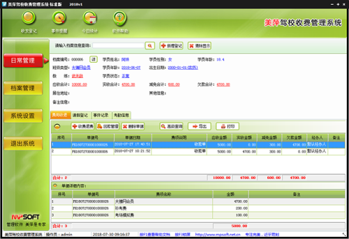 档案管理:快捷的实现学员档案管理,账目收退汇总及报表资料打印导入导出等功能。
