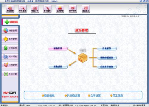 进货管理:进行商品采购入库,采购退货,进/退单据和当前库存查询,与供货商的往来帐务。