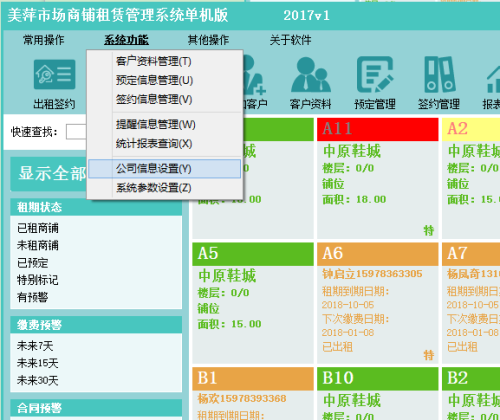 美萍市场商铺租赁管理系统是美萍公司推出的一款针对铺位出租管理的专业软件。广泛用于商铺门面、市场档口、摊位的出租管理。软件集成客户管理、合同资料管理、提醒管理以及报表查询等强大功能于一体,系统界面简洁优美,操作只管简单,无需专门培训即可正常使用。美萍市场商铺租赁管理系统充分结合行业需求,是为铺位租赁行业量身定制的一套专业管理软件。是您提升经营管理效率的强大工具。