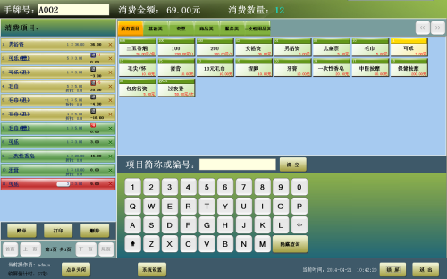 美萍休闲洗浴触屏点单系统,是一款在触摸屏电脑上使用的休闲洗浴管理系统。可以在触屏电脑上进行点单、退单等操作。操作简单,界面友好。