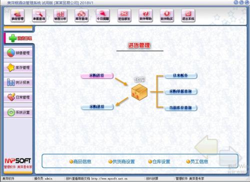 进货管理:进行商品采购入库,采购退货,进/退单据和当前库存查询,与供货商的往来帐务。