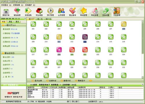 来宾登记→顾客开单:每个客户发生消费前必须进行登记(建立客户帐),给客户安排一个房间(餐台)等房间项目,房间项目必须是在“系统设置”模块中的“房间项目”中已经设置,系统只能对已设置的房间项目(餐台)进行登记。