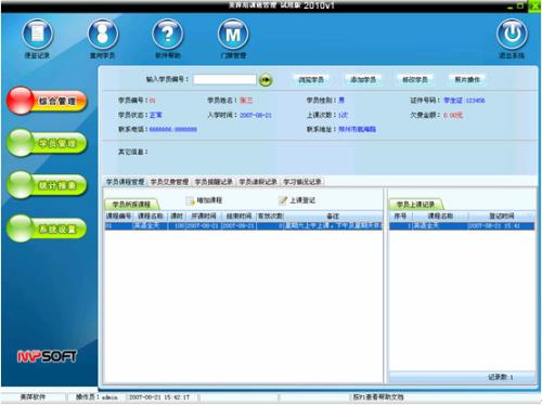 进入“综合管理”,可以对学员上课登记或其它的操作。