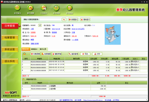 档案管理:快捷的实现幼儿档案管理,账目收退汇总及报表资料打印导入导出等功能。