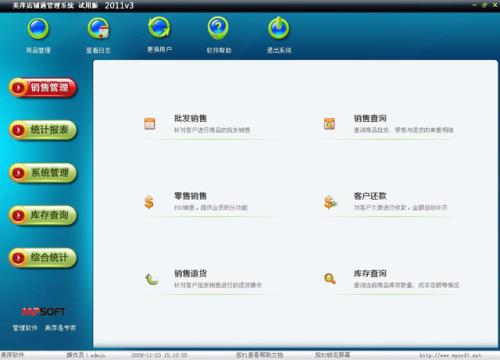 系统设置:进行商品管理、客户管理、会员管理、员工管理、操作员管理、数据库维护、修改密码等操作。
