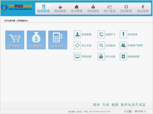 美萍烘培店触摸通是一款专为触摸屏POS机设计的软件,可以完全脱离键盘鼠标进行全触屏操作,界面简洁、操作直观、技术成熟,完全切合行业特点,无需培训,更优销售流程,销售结账更快2秒,方便强大的退换商品功能,彻底解决销售中的困扰,让烘焙收银真正快起来;后台有完善的商品管理和强大的报表统计,让您的管理真正简单到底!广泛适用于中西式烘培店、蛋糕店、面包房、西饼店等店面